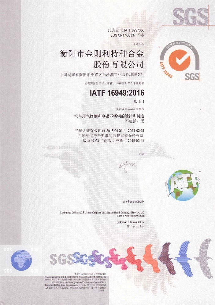 衡陽(yáng)市金則利特種合金股份有限公司成立于一九九九年十二月,注冊(cè)資本人民幣兩千兩百萬(wàn)元。注冊(cè)地址:衡陽(yáng)市雁峰區(qū)白沙洲工業(yè)園長(zhǎng)塘路2號(hào)。公司主營(yíng)耐蝕軟磁合金,為湖南省高新技術(shù)企業(yè)。公司自成立以來(lái),即致力于耐蝕軟磁合金的研發(fā)。 研制出的JL-31(00Cr13si2Pb)、JL-31B(00Cr13si2)、JL-31BS(00Cr13Si2S)、JL-37B(0Cr17Si2)、JL-37(0Cr17···
